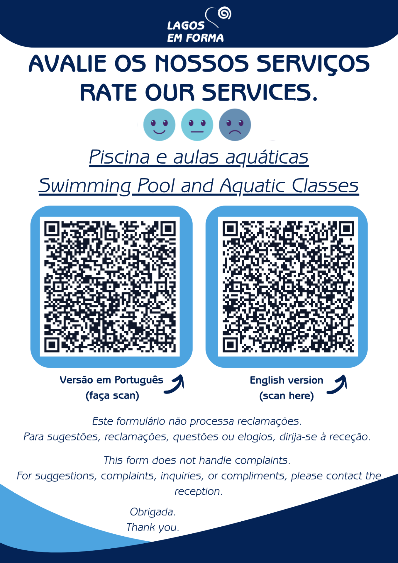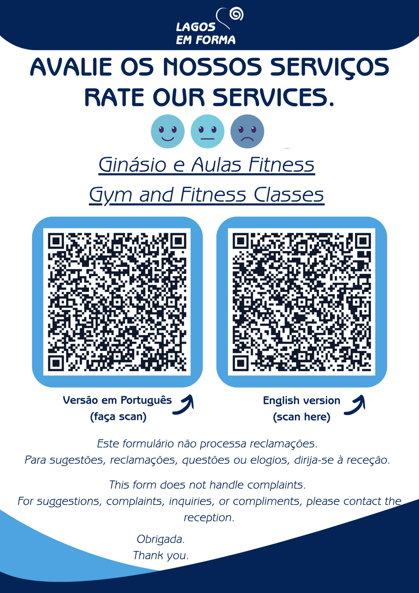 Estes formulários destinam-se exclusivamente à recolha de opiniões e sugestões, não sendo utilizados para o tratamento de reclamações.